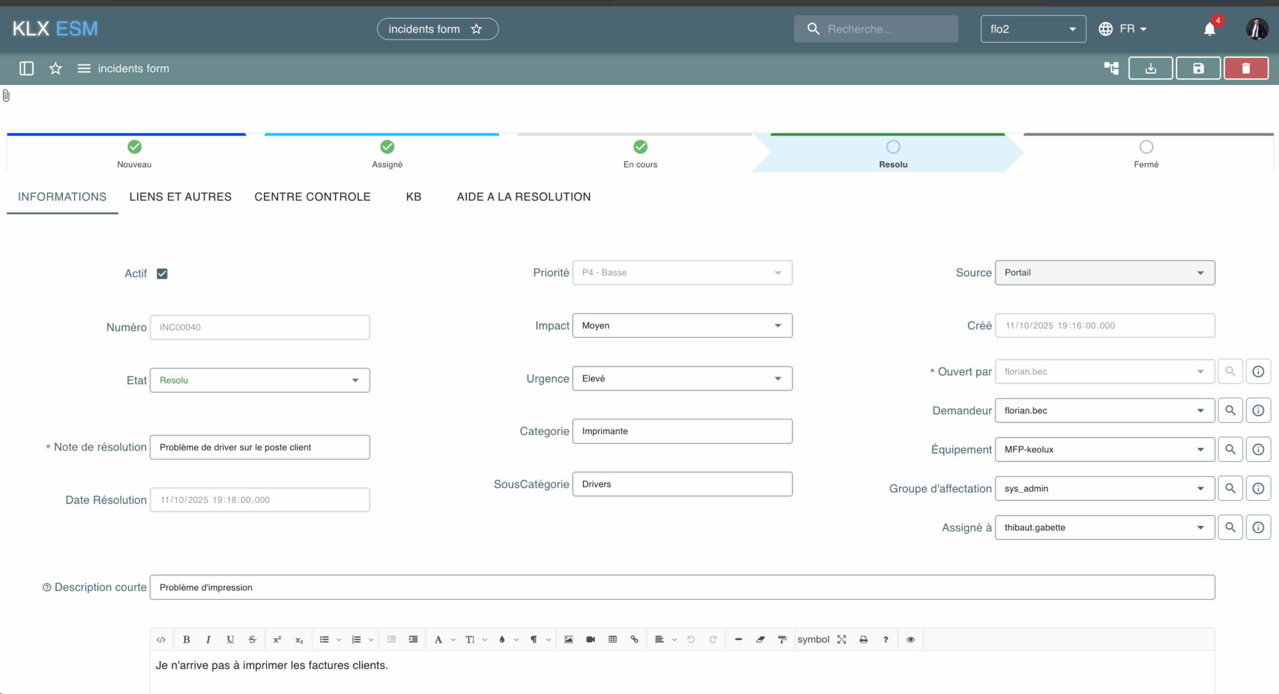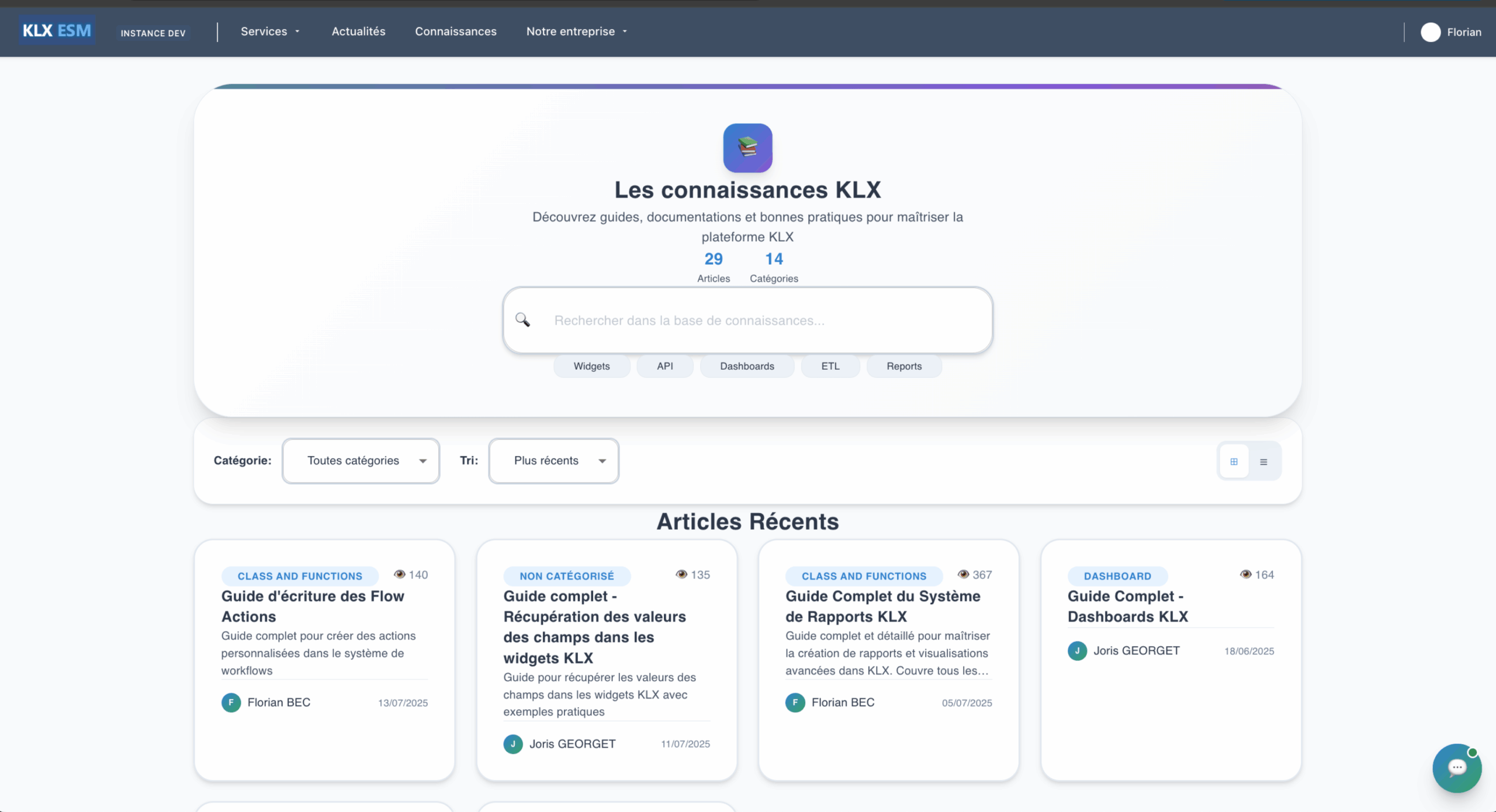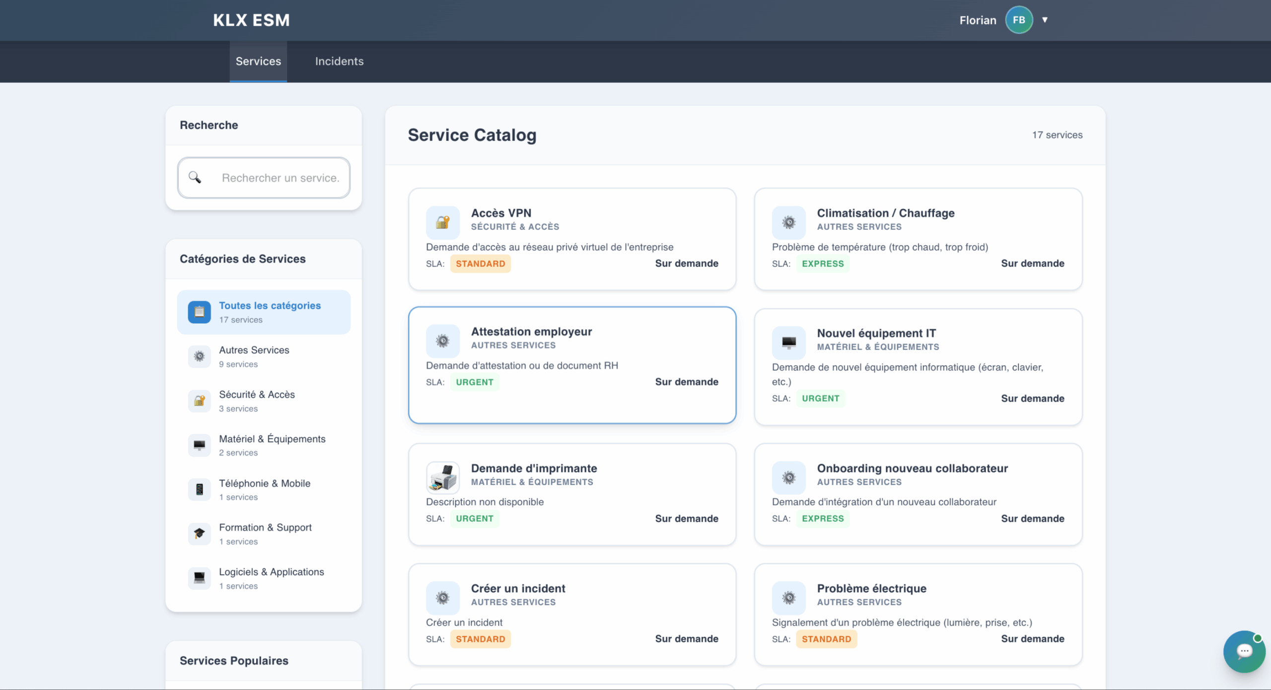 KLX ESM est une plateforme de gestion des services informatiques conforme aux bonnes pratiques ITIL. Conçue pour les DSI et responsables IT, elle centralise la gestion des incidents, des demandes et de la connaissance IT pour améliorer la qualité de service et réduire les temps de résolution.